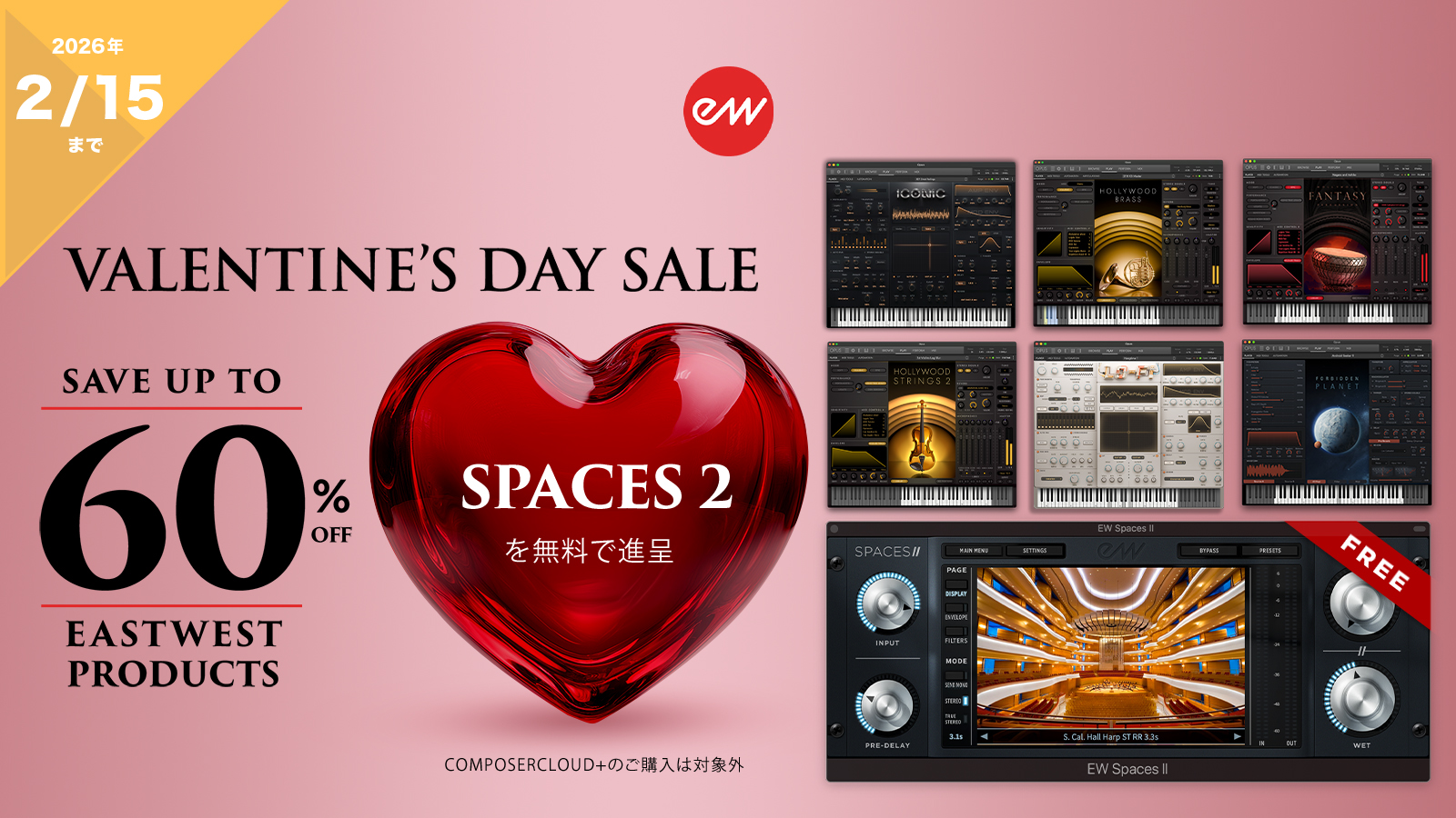今回は対象製品(バンドル製品とComposerCloud+以外)を購入いただくと「SPACES II」が無料で付属します。受け取り方法は、製品登録後お客様のアカウントに「SPACES II」のライセンスが自動で表示されます。