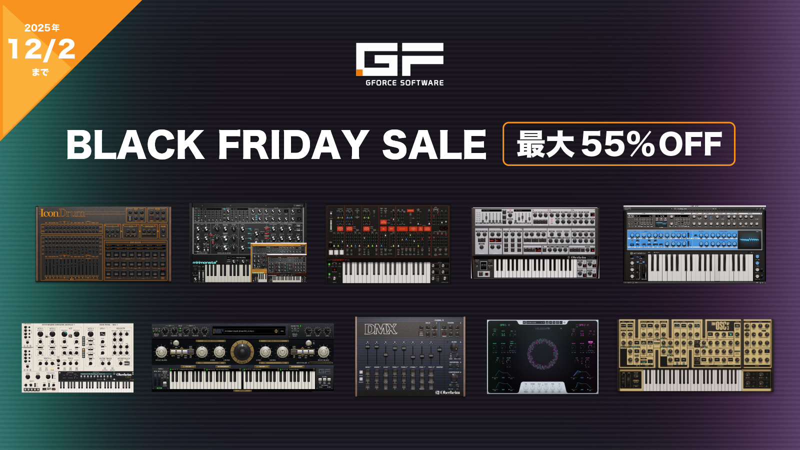 【GForce Software BLACK FRIDAY SALE】新製品のHalogen FMやM-Tronシリーズが12/2まで最大55%オフ!