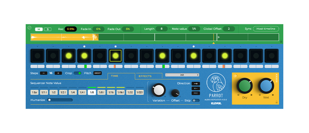 Parrotはどんな音楽ソースにもなじむ性質を持ち、単なるリピータープラグインとしての領域を超え、リアルタイムサンプリング技術によって、自在な音楽的リピート / ループ効果を発揮する斬新なモデルとして開発されました。