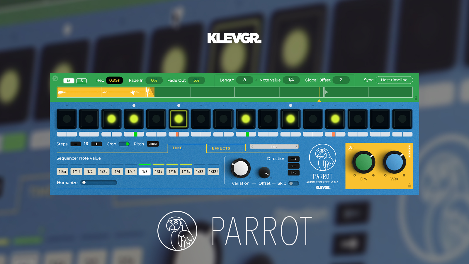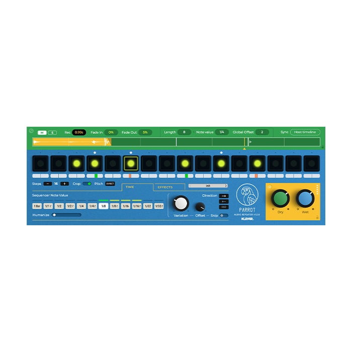 Parrotはどんな音楽ソースにもなじむ性質を持ち、単なるリピータープラグインとしての領域を超え、リアルタイムサンプリング技術によって、自在な音楽的リピート / ループ効果を発揮する斬新なモデルとして開発されました。