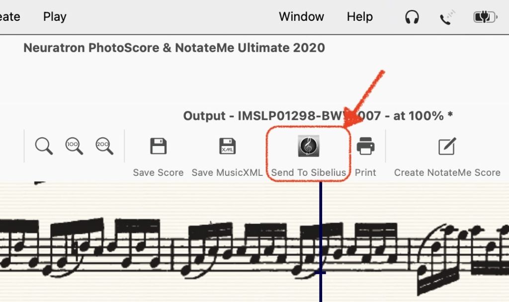 PhotoScoreはSibeliusへの直接エクスポート機能「Send to Sibelius」を持つ