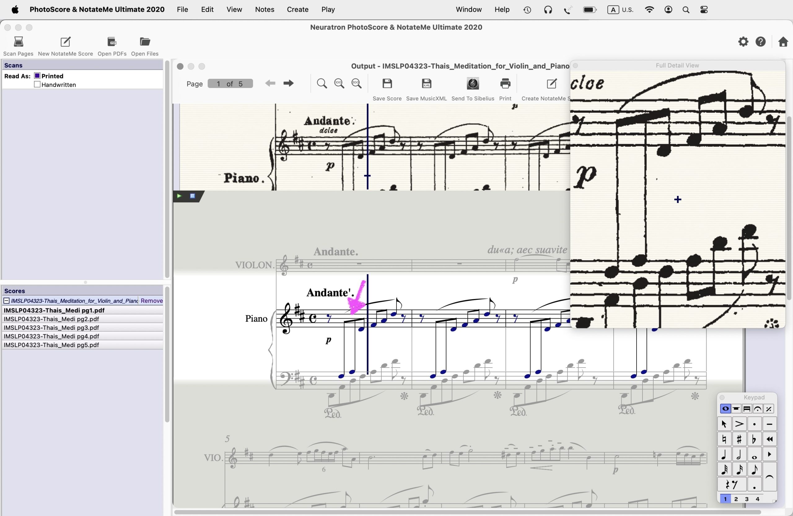 事例として使用するのは、ペトルッチ楽譜ライブラリー(ISMLP)からダウンロードしたパブリックドメイン楽譜「タイスの瞑想曲(Thaïs (Massenet, Jules), For Violin and Piano )」です。