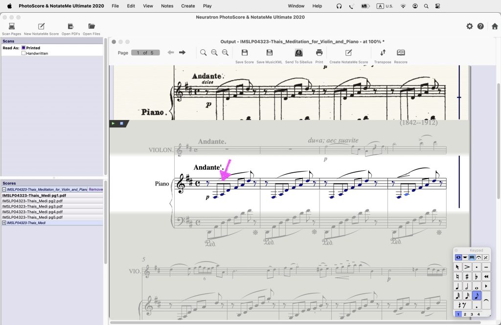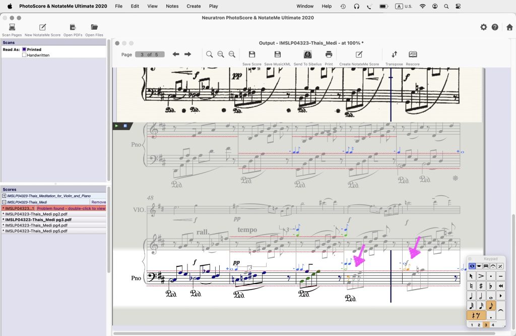 これはPhotoScore上でも修正可能ですが、あまり上手くいかない場合、そして最終的に楽譜作成ソフトウェアで仕上げる場合、ここでPhotoScoreでの編集方法を改めて学んで試すことに時間を費やすのは、あまり得策ではありません。