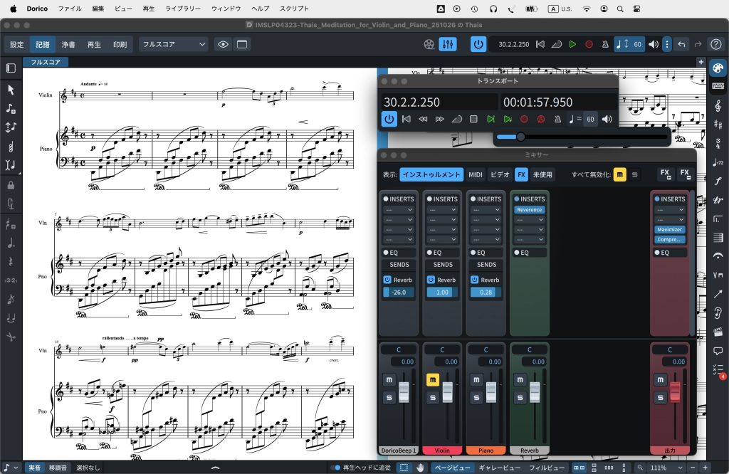 生徒が初心者であれば、ミキサーの設定により元のヴァイオリンの音を小さめに鳴らしておいたり、演奏テンポを落としたりすることも可能で、いくつかのバージョンをオーディオファイルにエクスポートし、それをメールに添付して生徒に送信することも可能です。