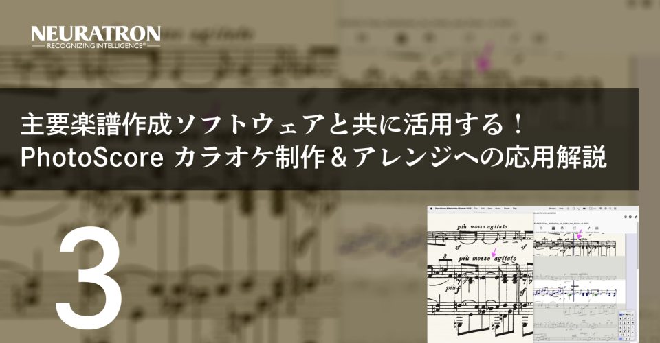 本シリーズの1回目の記事では、楽譜制作のフローにおける楽譜スキャニング・ソフトウェアの位置付けという観点からPhotoScore & NotateMe Ultimate(以下、Phot … 続きを読む Dorico、Sibelius、MuseScore等と共に使える高性能な楽譜スキャニング・ソフトウェア:PhotoScore & NotateMe Ultimate(3)練習用のカラオケ制作やアレンジに応用 by 小池太郎(株式会社ミュージッ ク・テック ・ソリューションズ)