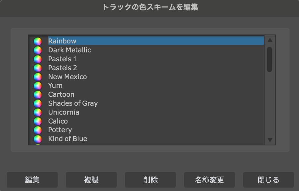 DP11ではトラックカラー・スキームの数が縮小され、過去のバージョンで扱われていたスキームが使用できなくなっています。