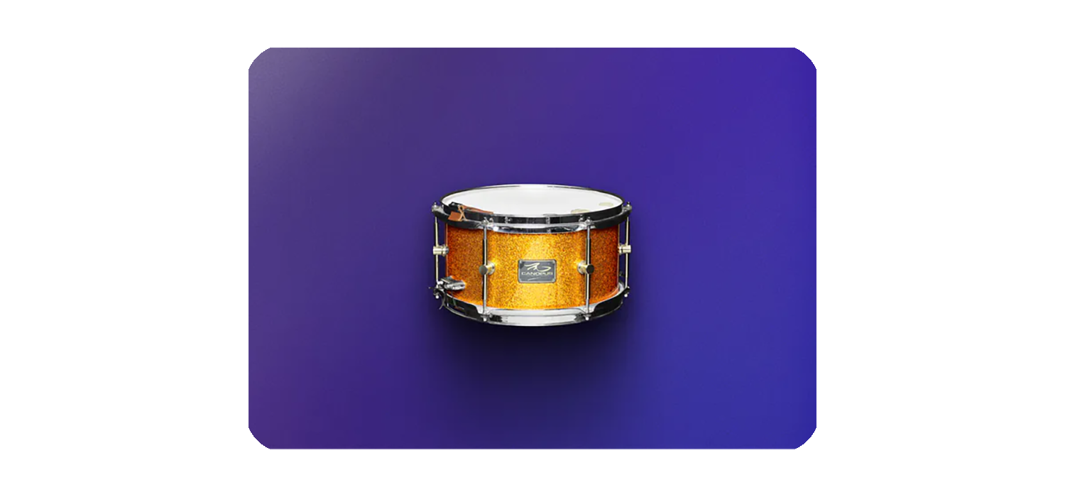 ゴールドスパークルメープル製スネアドラム。トラックに華やかさと輝きを添えます。アクセントやクイックフィルに最適です