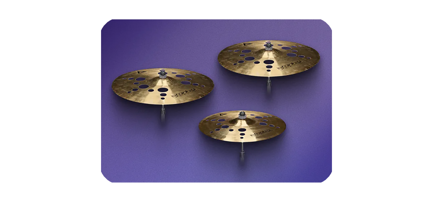 爆発的なアクセントを生み出す。上段にイスタンブール・アゴップ 12インチ ION スプラッシュ、中段にイスタンブール・アゴップ 10インチ トラッシュヒット、下段にイスタンブール・アゴップ 13インチ ドライダーククラッシュを配置。