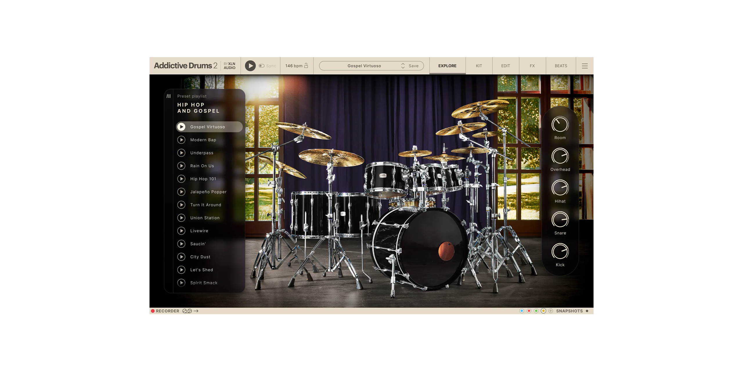 Hip Hop and Gospel ADpakは、ヒップホップのパンチ感、ゴスペルの表現力、直線的なグルーヴの可能性を網羅する4つのユニークなスネアを厳選して収録。完璧なポケットを構築するために必要なすべてを提供します。