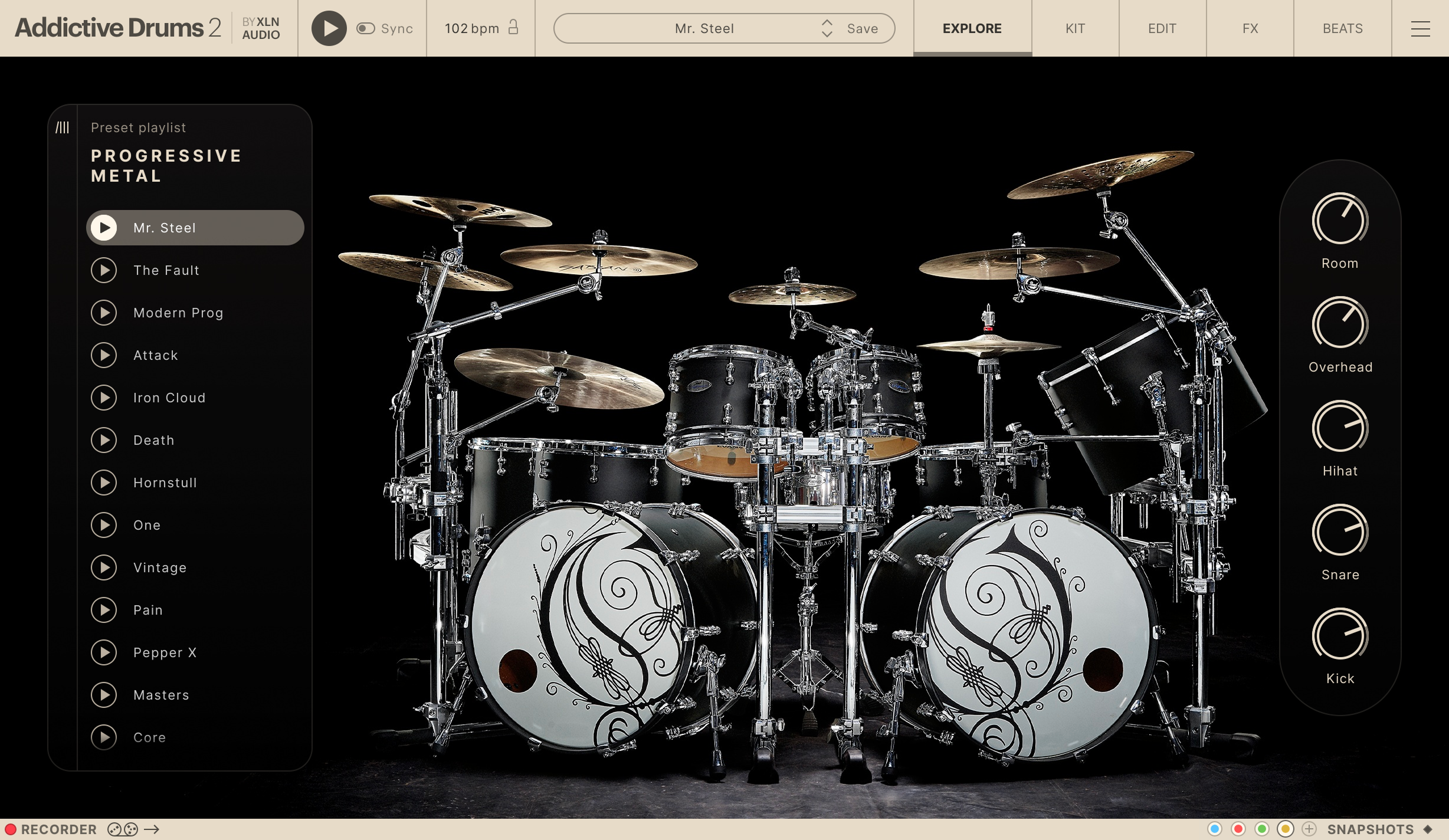 Progressive Metal ADpakは、メタル界屈指のOpethのドラマー、ワルッテリ・ヴァユリュネン (Waltteri Väyrynen)のサウンドをあなたの楽曲にお届けします。ワルッテリ自身が愛用するPearl Reference PureキットでレコーディングされたこのADpakは、明瞭なダブルキック、メロディックな動きを生み出すダイナミックなタム、そして豊かで深みのあるシンバルサウンドを提供します。