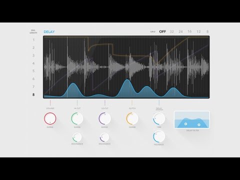 Kuvertは、エフェクト処理にておいて、まったく新しい方法を定義しています。 Kuvertでは5つの異なるエンベロープを描くことができます。 これらのエンベロープはさまざまなエフェクトパラメータを制御し、自由にまたはグリッド上に描画できます。 エンベロープはループされますが、オーディオ自体はループされません(もちろん、ループされた素材をフィードしている場合を除きます)。 これは、まったく新しいレベルに到達するようにサウンドをエディットするパワフルな手法となり得、時には認識できないこともあるかもしれません。 プラグインの、ループの性質により、どんなスタイルの音楽にも絶妙にマッチします。