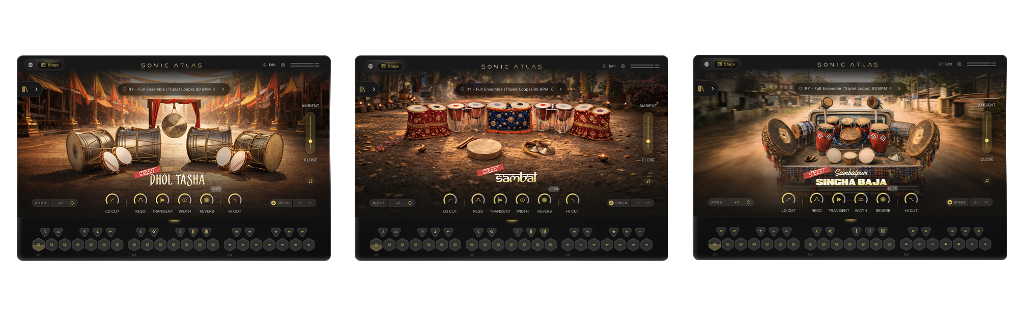 「Street Series」は、Sonic Atlas内に新設されたカテゴリーで、演奏可能なストリート・パーカッション楽器に特化しています。各キットは本格的なアンサンブルによる演奏と、ハイエンドなスタジオで録音され、リアルなストリート・パフォーマンスが持つ生のエネルギー、スケール感、そしてダイナミクスを余すところなく捉えています。