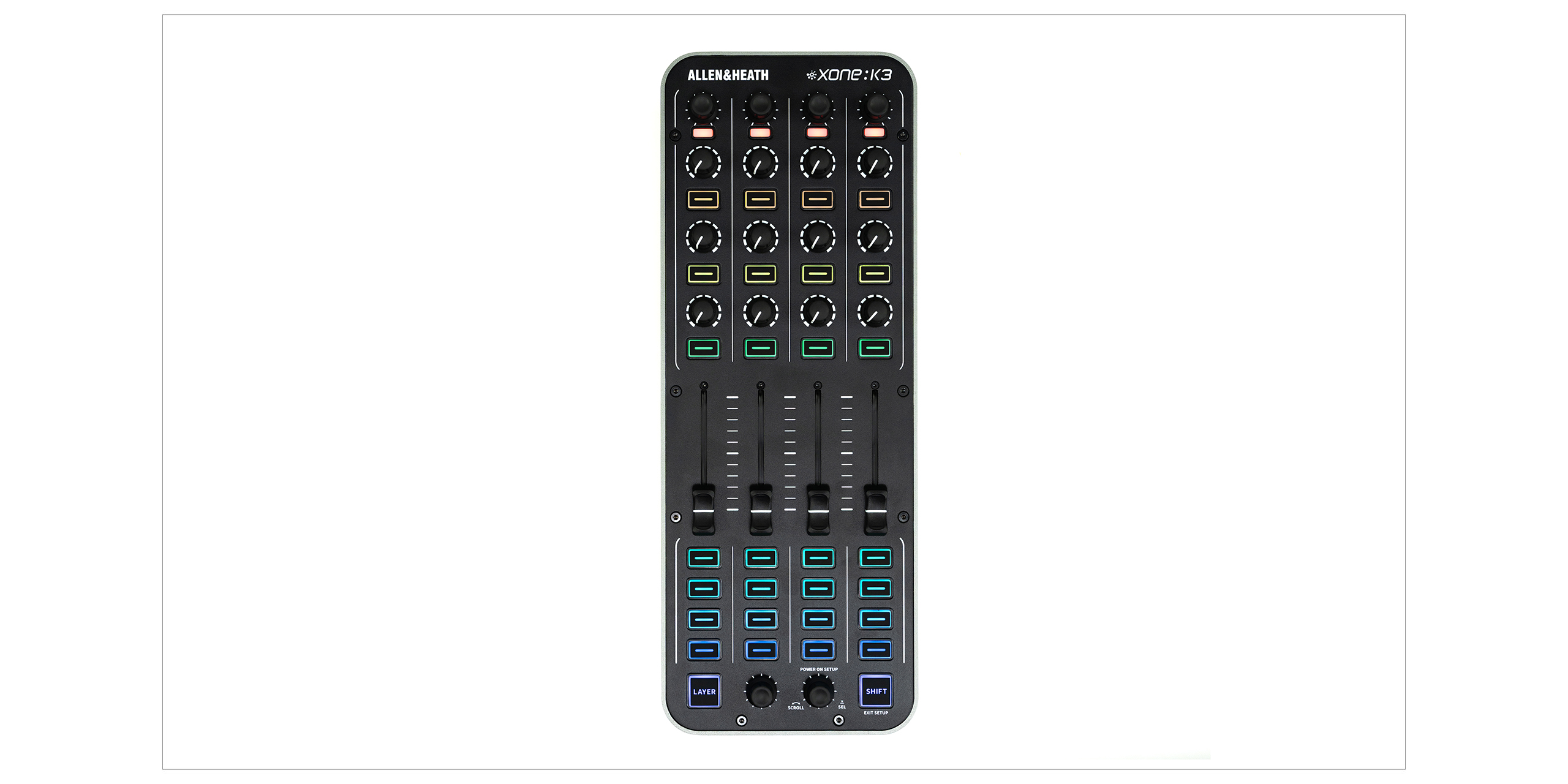 Xone:K3は、単一のユニットに類い稀な組み合わせのコントロールを搭載しています:滑らかなトランジションを実現するフェーダー、すべてのパラメーター・タイプを精密に制御するエンコーダーとポット、パフォーマンスやキューイングに最適なレスポンス性能の高いバックライト付きボタン。52の物理コントロールと3つの完全に独立したレイヤーを備え、最大174の個別のMIDIパラメーターをアサイン可能で、複雑なハイブリッド環境やライブ・セットアップに最適です。
