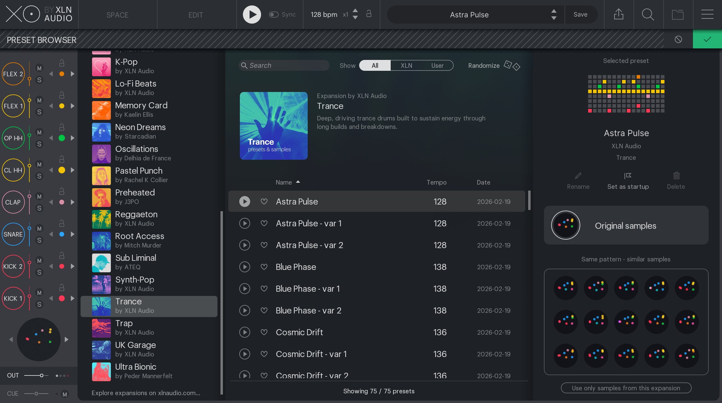 XOをお気に入りのサンプルパックから近隣の類似サウンドに切り替えることで、無限のビートバリエーションを探求できます。