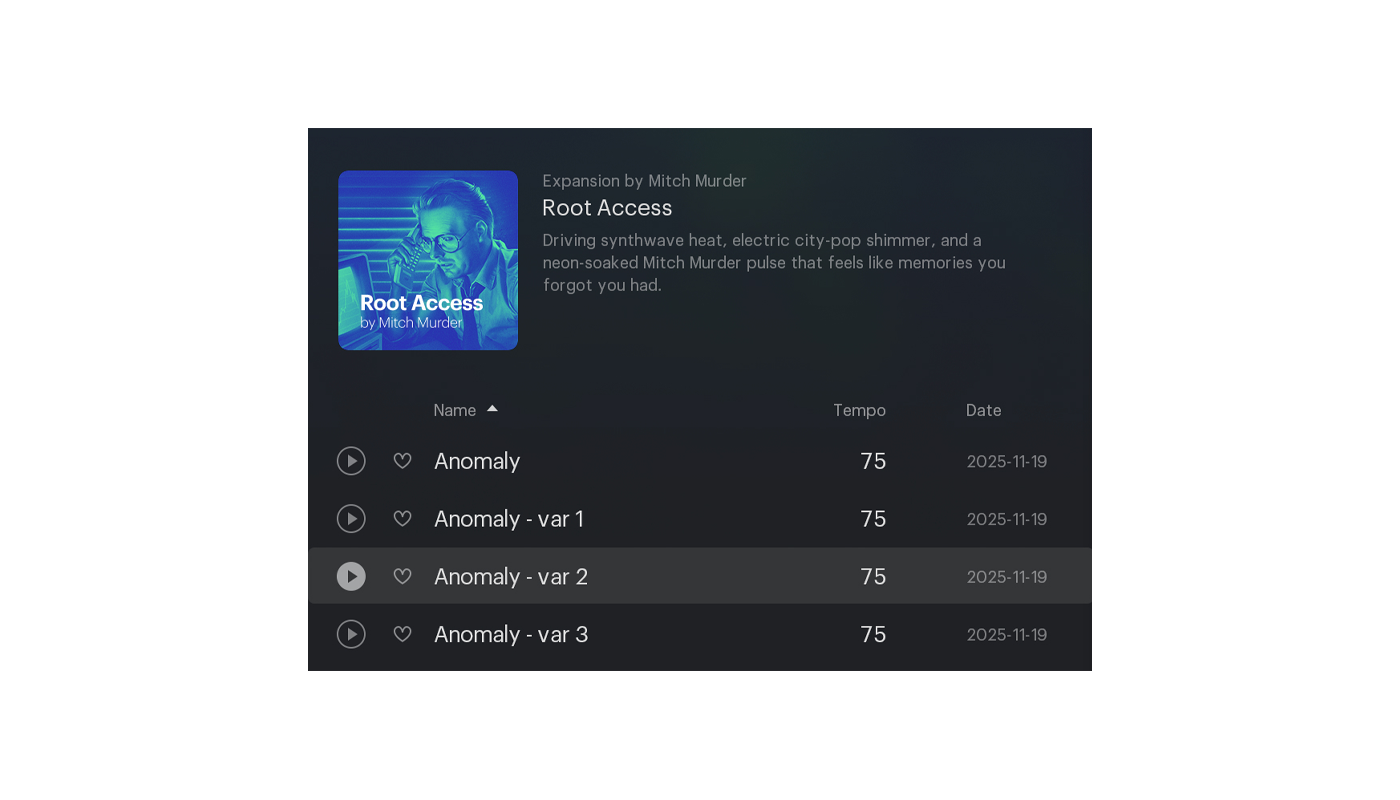 Root Accessは、ミッチ・マーダーによるネオン輝く80’sサウンドとビートへの道筋となります。このXO拡張パックは、シンセウェーブとフュージョングルーヴが織りなす彼の世界感を繋ぎ、温かな深夜のノスタルジアに包まれています。